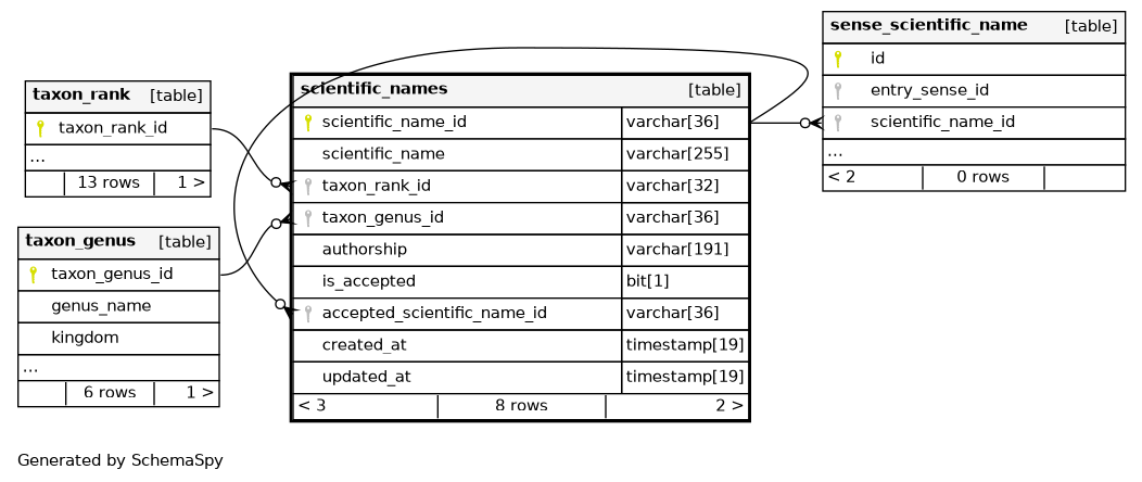 | uq_scientific_name_rank_genus | Must be unique | Asc/Asc/Asc | scientific_name + taxon_rank_id + taxon_genus_id |