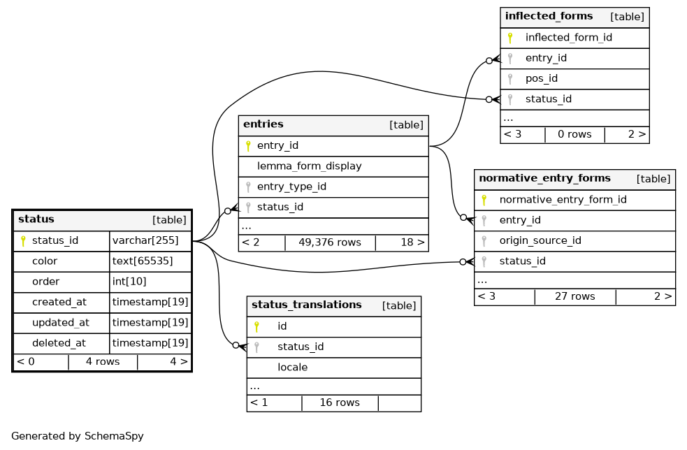 | PRIMARY | Primary key | Asc | status_id |